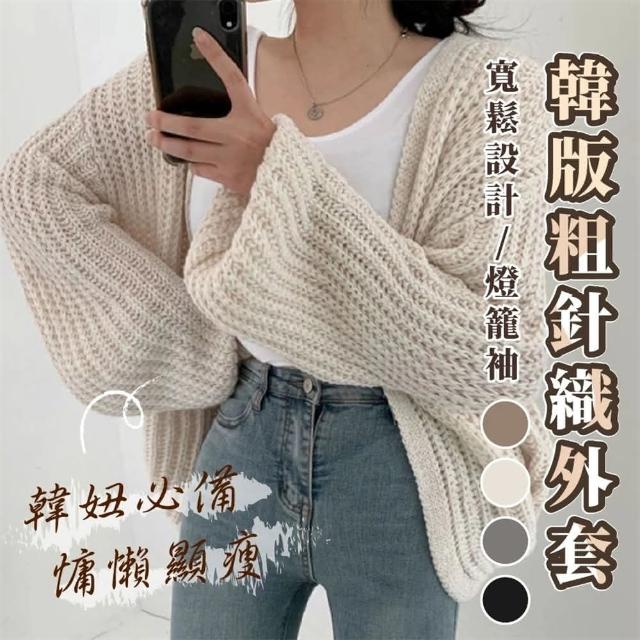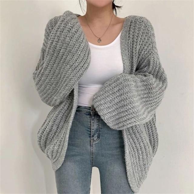 (韓風大碼)空調衫慵懶風V領披肩防嗮百搭寬松休閑燈籠袖針織開衫毛衣外套