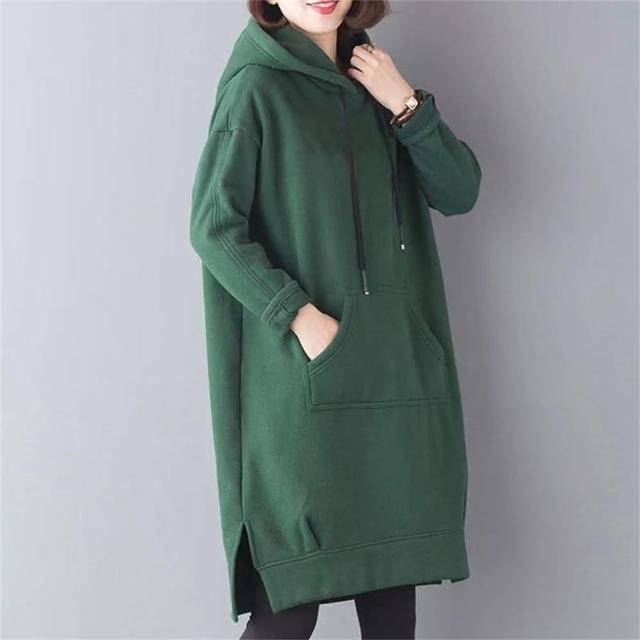 (韓風大碼)大尺碼卫衣 中長款卫衣 韓版原宿風刷毛加厚寬鬆大尺碼過膝中長款洋裝女 100公斤可穿