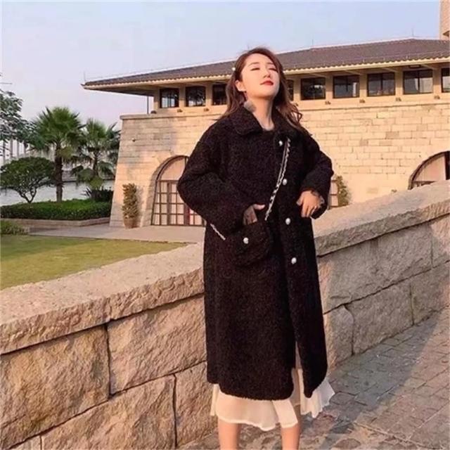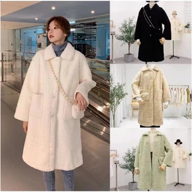 (韓風大碼)大尺碼外套 秋冬新品韓版時尚氣質百搭寬鬆加絨保暖 中長款仿羊羔毛外套女 韓國羊羔毛外套