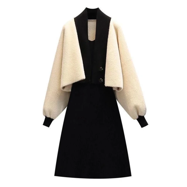 (韓風大碼)大尺碼套裝 大碼女裝 休閒套裝 秋冬季新款小香風寬松短款針織開衫顯瘦連衣裙兩件
