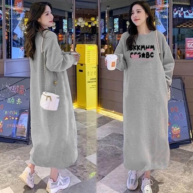 (韓風大碼)大尺碼洋裝 大碼女裝 連衣裙女春秋長袖寬松爆款簡約長裙秋冬款加絨保暖長款過膝懶人裙