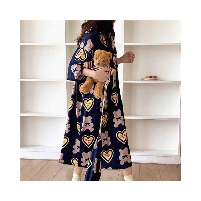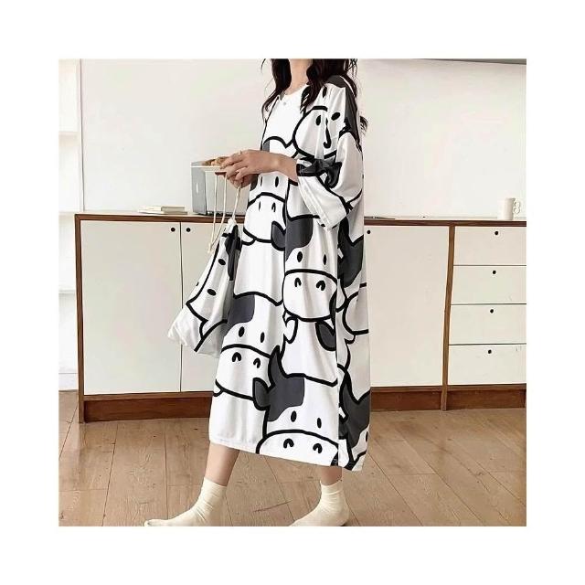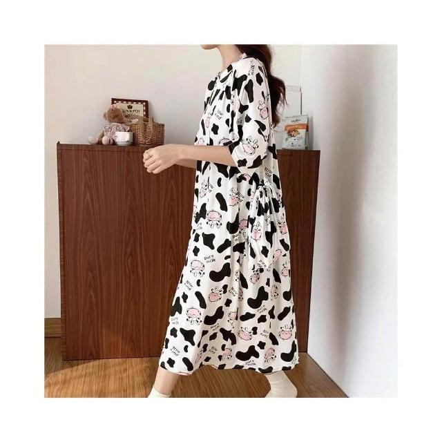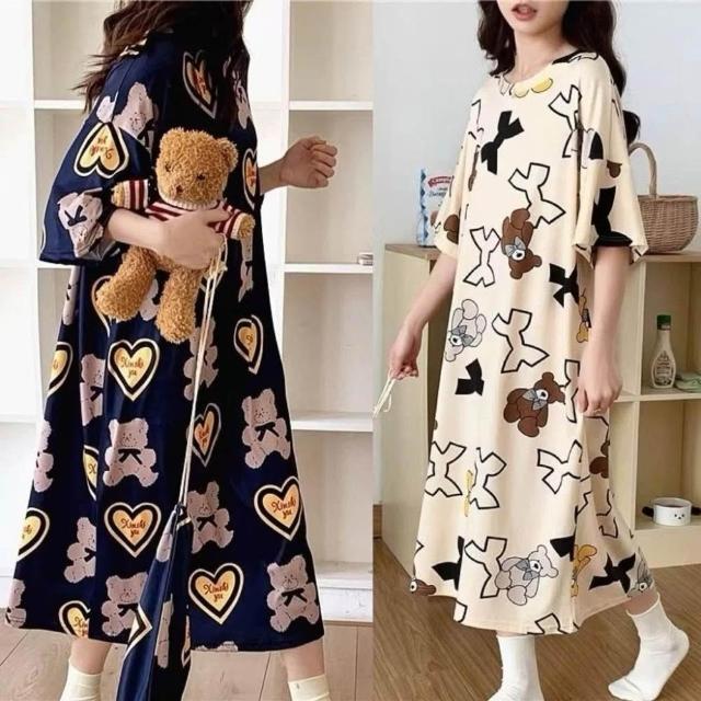 (韓風大碼)大尺碼睡裙 大碼女裝 連身睡裙 短袖睡衣女 300斤睡裙女 過膝長裙 寬松中長款卡通家居服