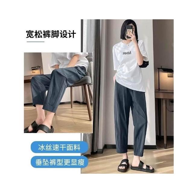 大尺碼 大尺碼長褲女 冰絲長褲女 哈倫褲女 夏季高腰垂感寬鬆顯瘦九分烟管休閒褲