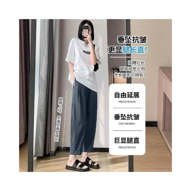 大尺碼 大尺碼長褲女 冰絲長褲女 哈倫褲女 夏季高腰垂感寬鬆顯瘦九分烟管休閒褲