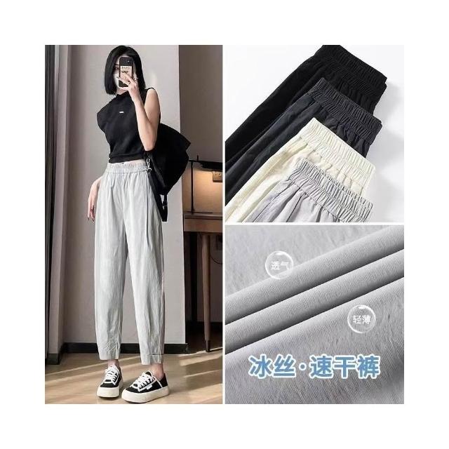 大尺碼 大尺碼長褲女 冰絲長褲女 哈倫褲女 夏季高腰垂感寬鬆顯瘦九分烟管休閒褲
