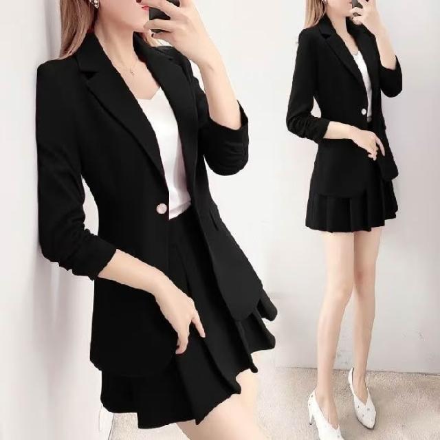 (韓風大碼)大尺碼套裝 西裝兩件式 西裝外套女 休閑套裝 西裝百褶裙套裝 西裝短裙 單扣西裝外套
