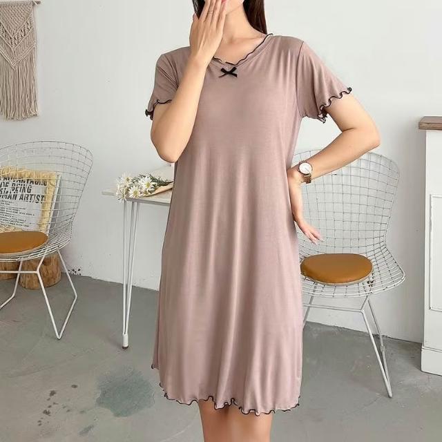 (韓風大碼)大尺碼睡裙 連身睡衣 莫代爾睡裙女 大碼寬松圓領短袖套頭睡衣中長款過膝連衣裙a字裙