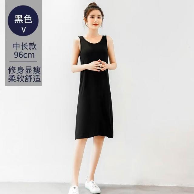 (韓風大碼)大尺碼連身裙 洋裝 寬松莫代爾背心裙女夏套頭圓領睡裙薄款內搭打底裙家居過膝連衣裙