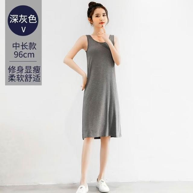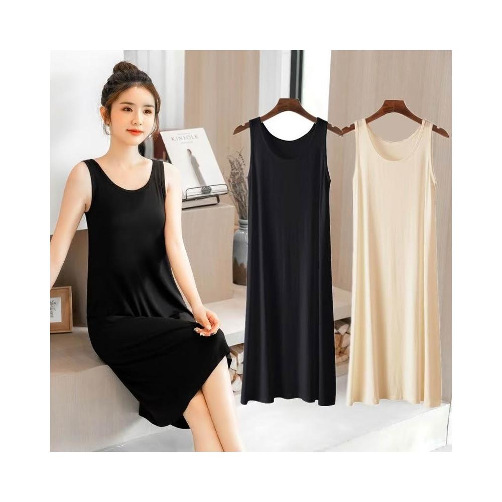 (韓風大碼)大尺碼連身裙 洋裝 寬松莫代爾背心裙女夏套頭圓領睡裙薄款內搭打底裙家居過膝連衣裙