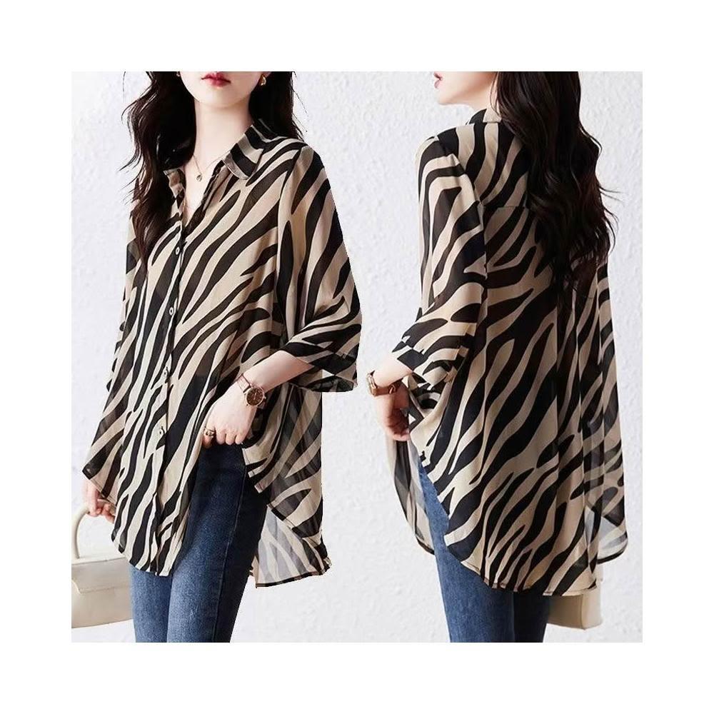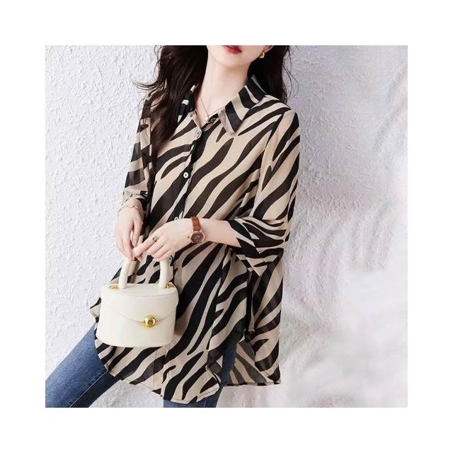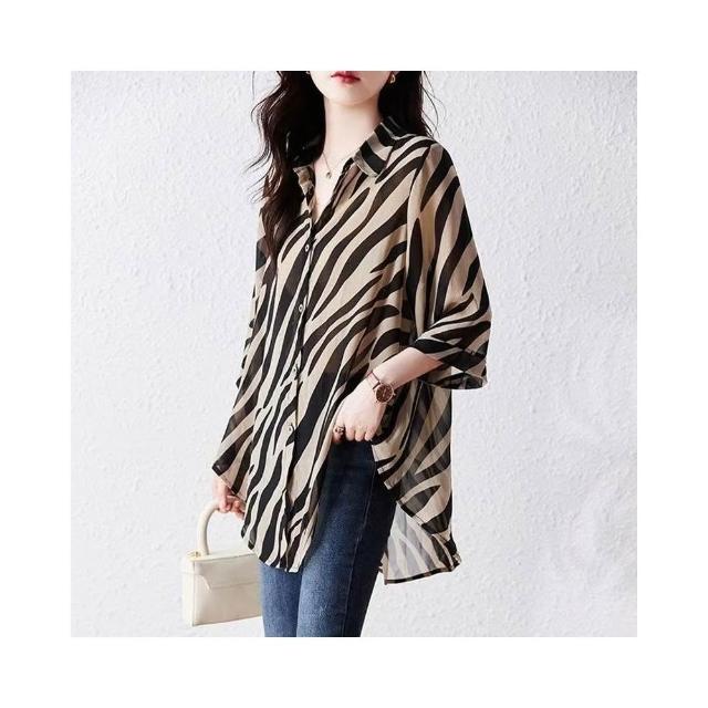 (韓風大碼)大尺碼襯衫 大尺碼上衣 大尺碼韓版女裝 女生衣著 七分袖雪紡襯衫 寬鬆襯衣 顯瘦上衣