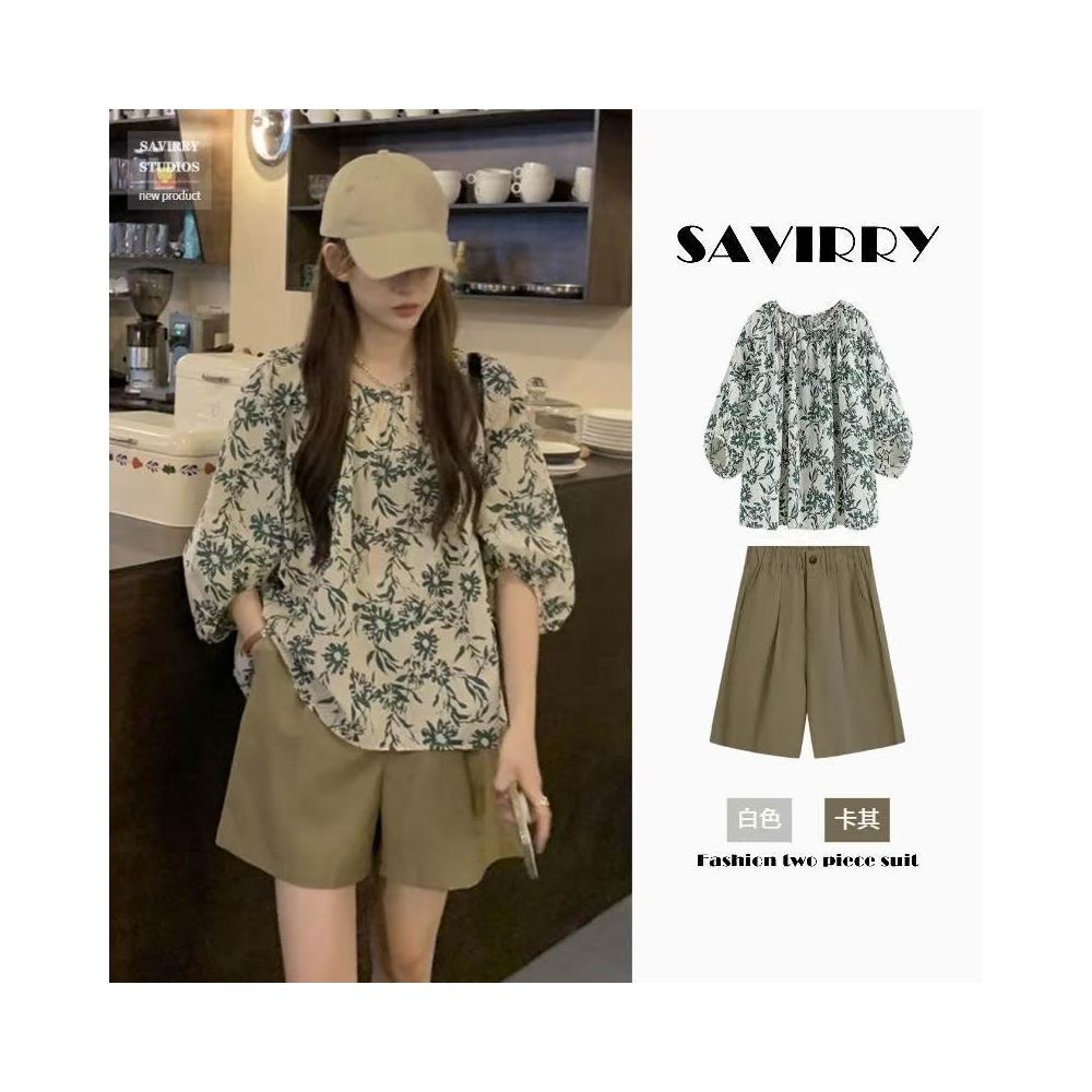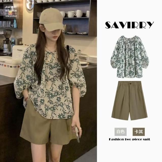 (韓風大碼)大尺碼套裝 夏季大碼女裝微胖mm顯瘦遮肉穿搭輕熟設計感小眾上衣短褲兩件套裝