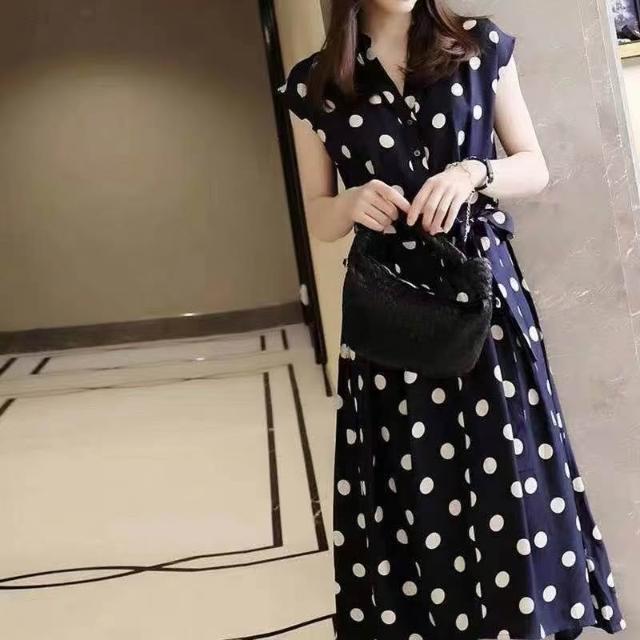 (韓風大碼)大碼洋裝 法式印花收腰連衣裙 夏季波點連身裙女