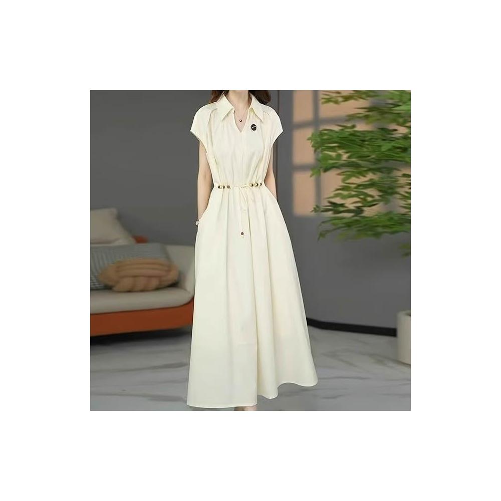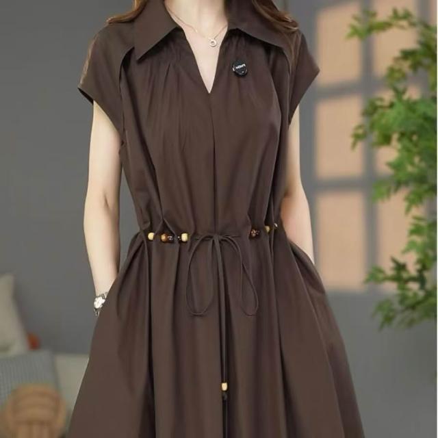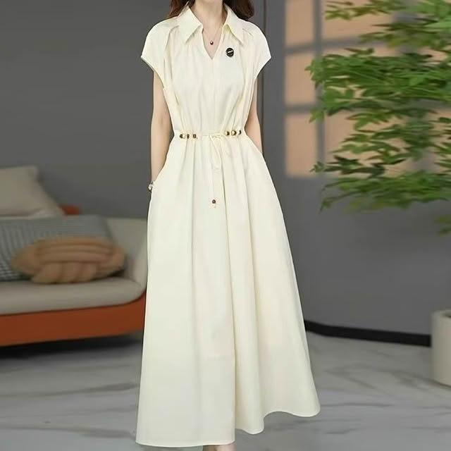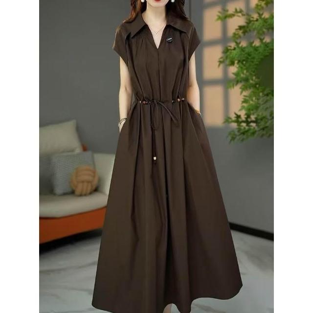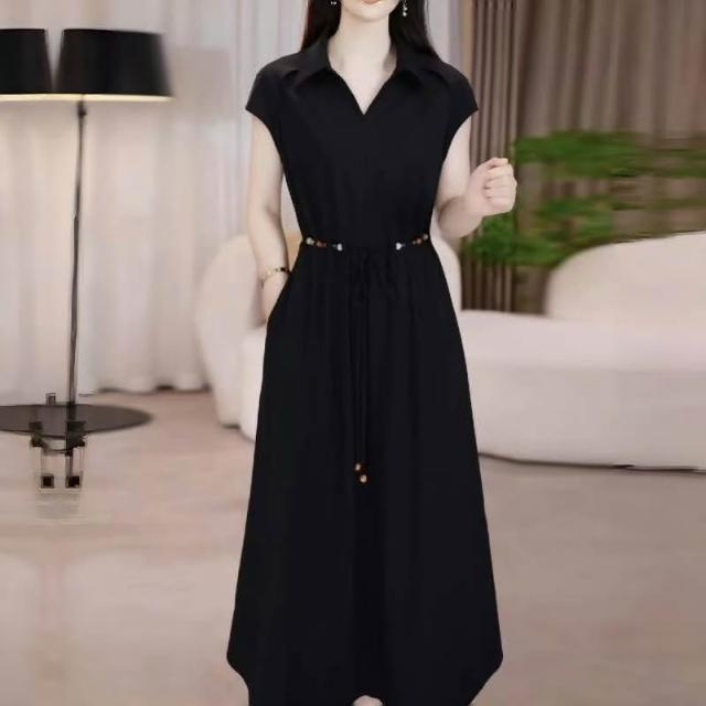 (韓風大碼)大碼洋裝 大尺碼連衣裙 夏季洋氣連身裙 收腰顯瘦氣質中長裙