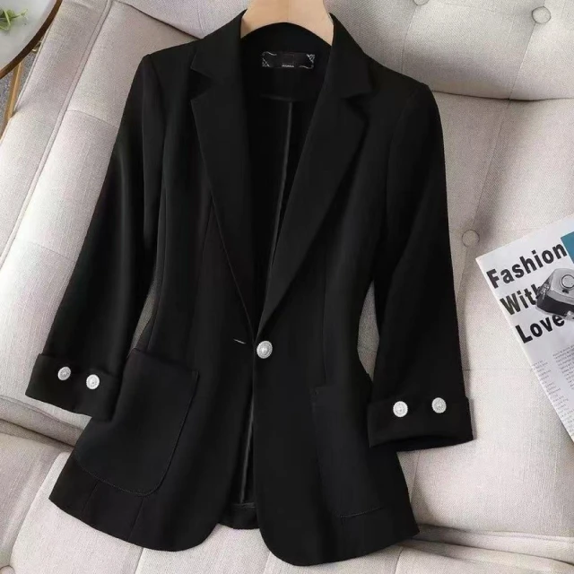 (韓風大碼)大尺碼休閑薄款氣質修身七分袖西裝外套