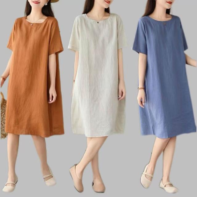 40-90公斤短袖棉麻洋裝