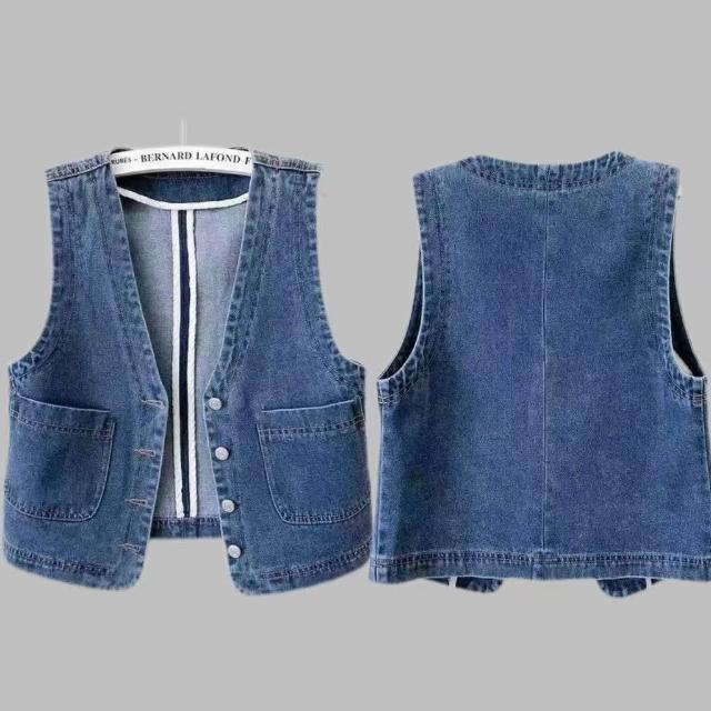 (韓風大碼)大尺碼春夏新款洋氣高檔輕薄短款牛仔馬甲女 無袖上衣 背心上衣 外套
