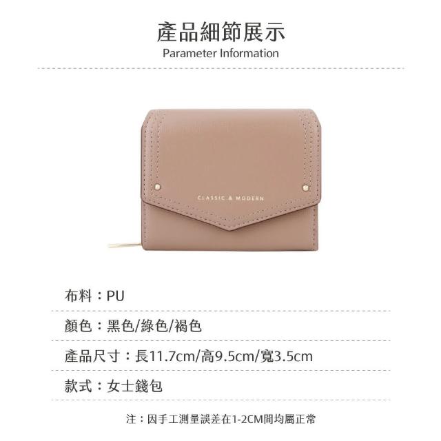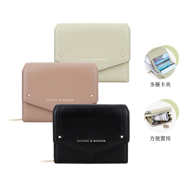 Haoner信封壓扣摺疊三折短夾 女短夾 女錢包零錢包 皮夾 皮包 女夾 卡夾 拉鍊錢包