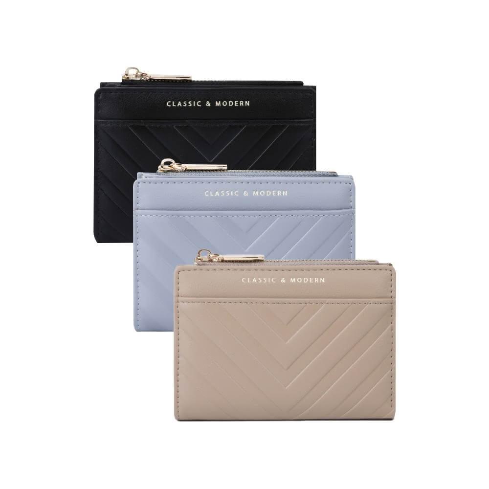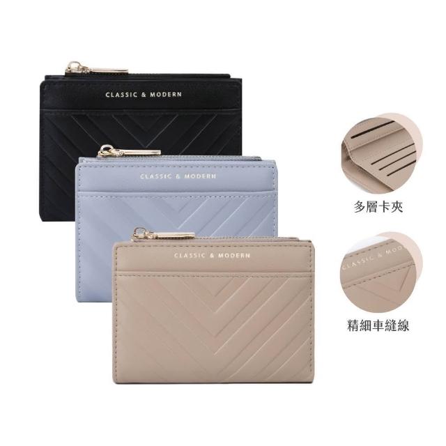 Haoner質感線條壓花摺疊短夾 皮夾 短夾 零錢包二折短夾 女皮夾 皮包 中夾 拉鍊錢包 女用皮夾 女夾