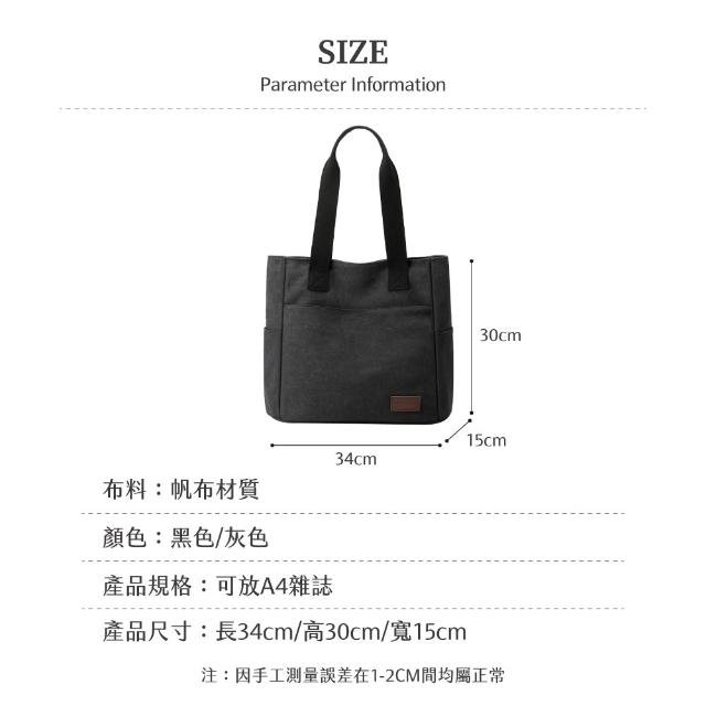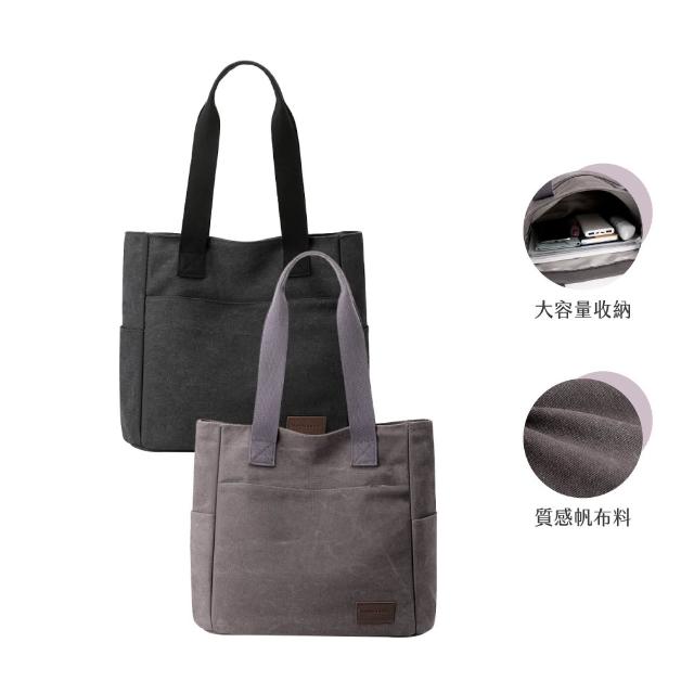 Haoner休閒百搭多隔層收納帆布包 肩背包 女包 通勤包 托特包 手提包