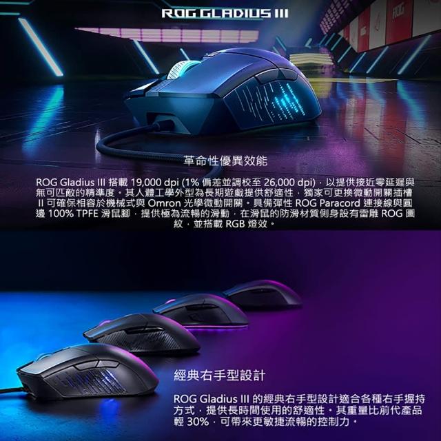 ASUS 華碩Gladius III 電競滑鼠(遊戲滑鼠 有線滑鼠 華碩滑鼠 19000 DPI/RGB/零延遲/ASUS)