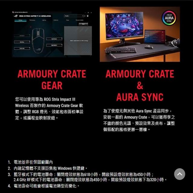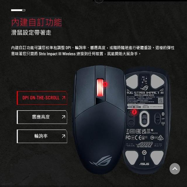 ASUS 華碩ROG Strix Impact III Wireless 無線滑鼠 光學感應器 雙模連線 輕量化設計 遊戲滑鼠