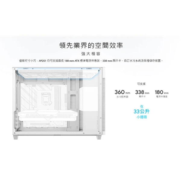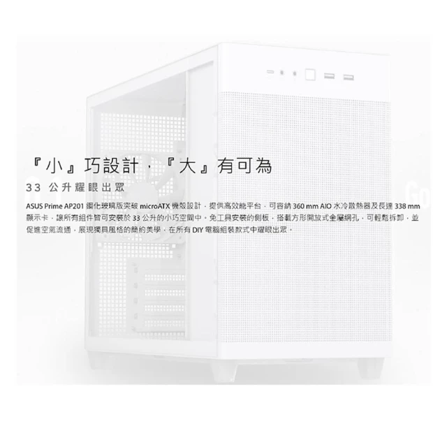 ASUS 華碩Prime AP201 MicroATX White Edition 鋼玻側透版 機殼(黑色/水冷機殼/主機殼)