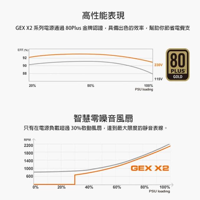 COUGAR 美洲獅GEX X2 1000W 金牌 電源供應器(全模組/日系電容/智慧零噪音風扇/十年保)