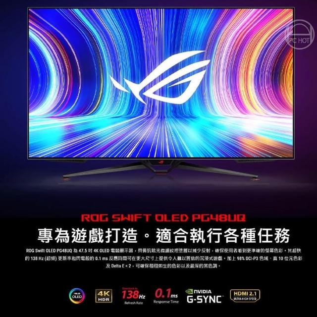 ASUS 華碩ROG Swift OLED PG48UQ 電競螢幕(電腦螢幕/遊戲螢幕/華碩螢幕/47.5吋/138Hz)