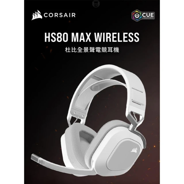 CORSAIR 海盜船HS80 MAX 無線耳機麥克風(藍芽耳機 全向麥克風 記憶海綿 杜比音效 跨平台支援)