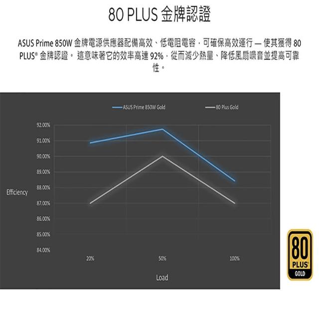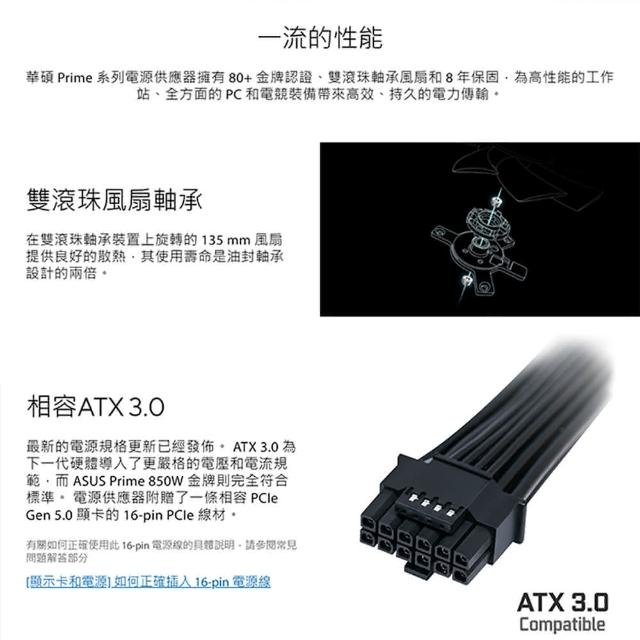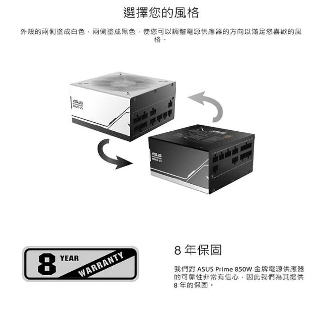 ASUS 華碩Prime 850W Gold 電源供應器(80Plus 金牌 ATX 3.0 PCIe Gen 5.0 全模組 金牌電源供應器)