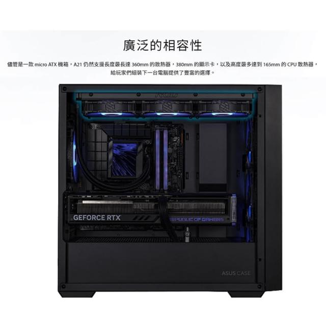 ASUS 華碩A21 ATX 電腦機殼(白色 支援360mm散熱器 380mm顯示卡 中塔機箱 玻璃透側 電腦機殼)