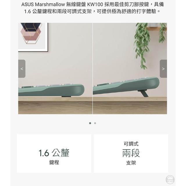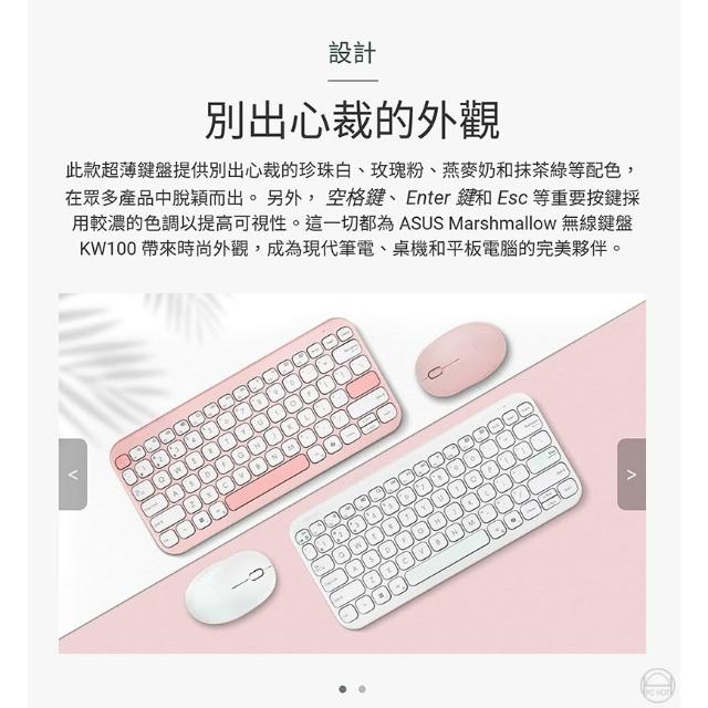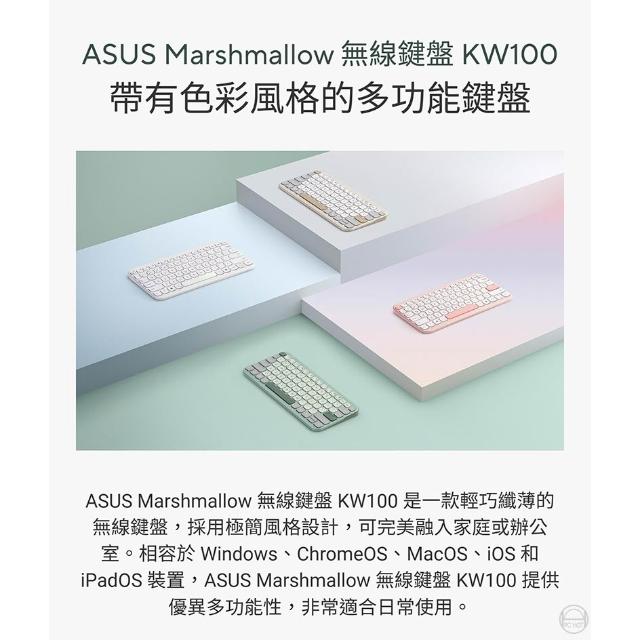 ASUS 華碩Marshmallow KW100無線鍵盤(纖薄設計/弧形鍵帽/剪刀腳按鍵/兩段式支架/靜音鍵盤)
