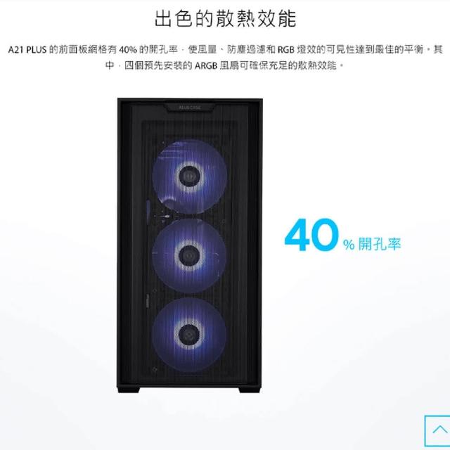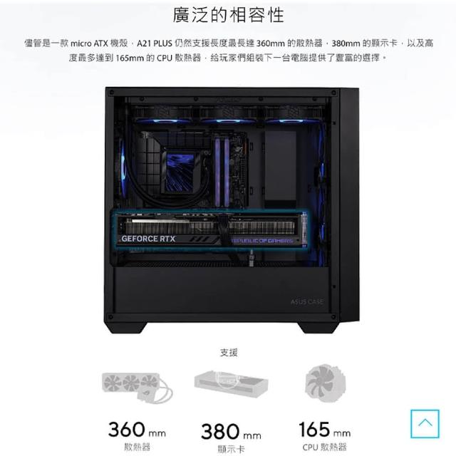ASUS 華碩A21 PLUS Case 電腦機殼 黑色(支援360mm散熱器 380mm顯示卡 中塔 玻璃透側 華碩機殼)