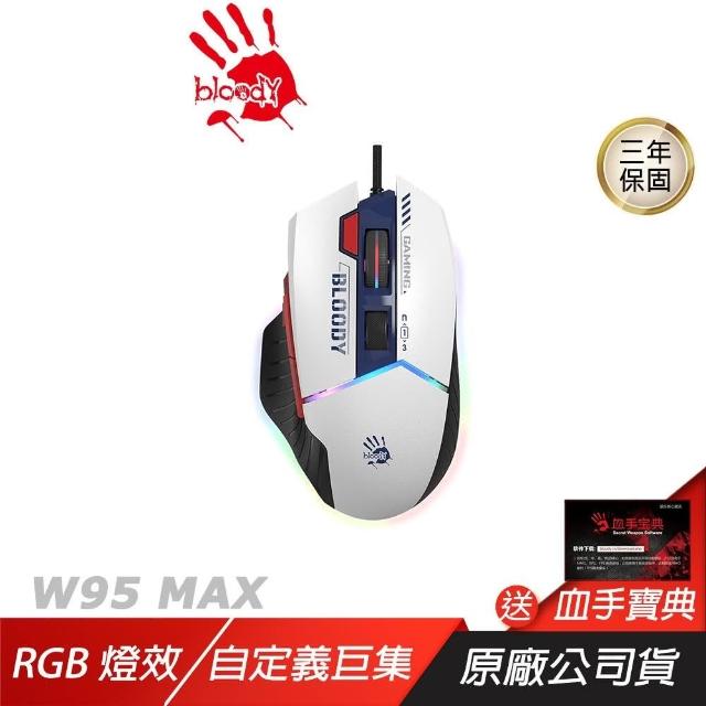 A4 Bloody 雙飛燕血手幽靈 W95 MAX 有線電競滑鼠(藍白 5段RGB燈效 自定義巨集 遊戲滑鼠 電競滑鼠)