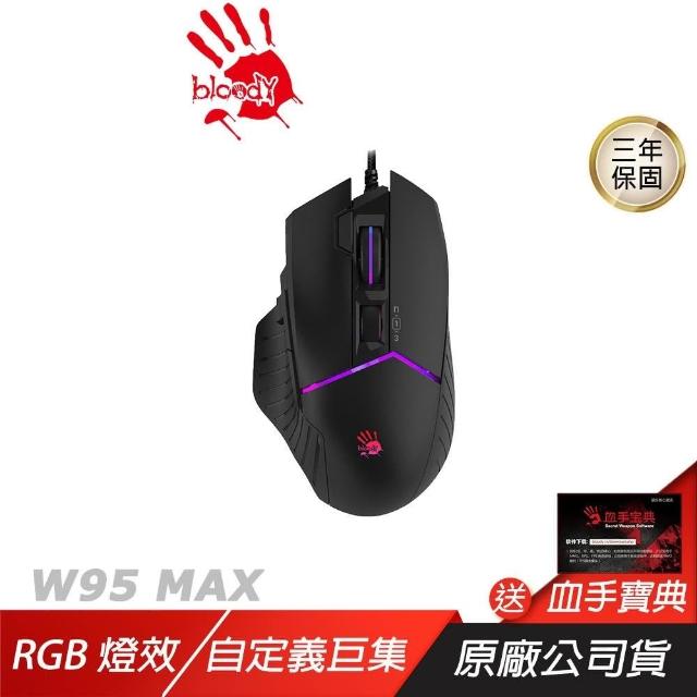 A4 Bloody 雙飛燕W95 MAX 有線電競滑鼠(黑色 5段RGB燈效 自定義巨集 遊戲滑鼠 電競滑鼠)