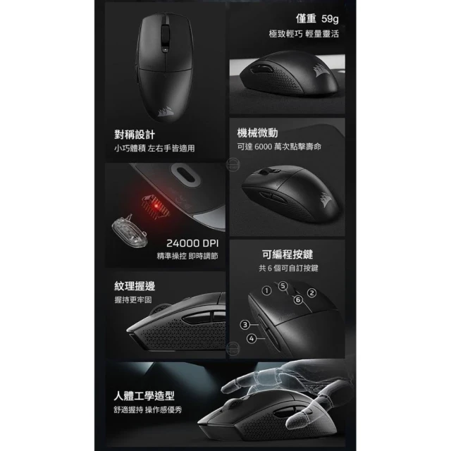 CORSAIR 海盜船CORSAIR 海盜船 M55 無線滑鼠 雙模連線 輕量設計 機械微動 6個可編程按鍵 無線滑鼠 電競滑鼠 遊戲滑鼠