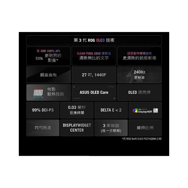 ASUS 華碩ROG Strix OLED XG27AQDMG 電競螢幕 27吋 WOLED 240Hz 0.03ms HDR