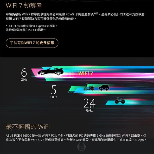 ASUS 華碩ASUS 華碩 PCE-BE6500 無線網卡 WiFi 7 PCIe 網卡 分享器 Wifi 接收器 無線網路卡