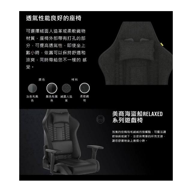 CORSAIR 海盜船CORSAIR TC100 電競椅 RELAXED 黑灰色 皮革 布質 人體工學 透氣舒適
