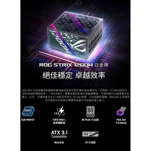 ASUS 華碩ROG STRIX 850 1000 1200W 80Plus 白金牌 電源供應器 ATX 3.1 Gen 5.0