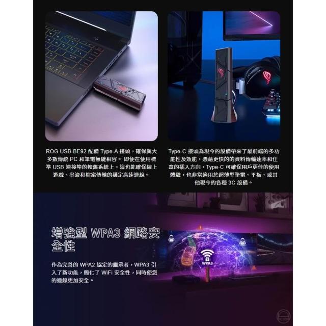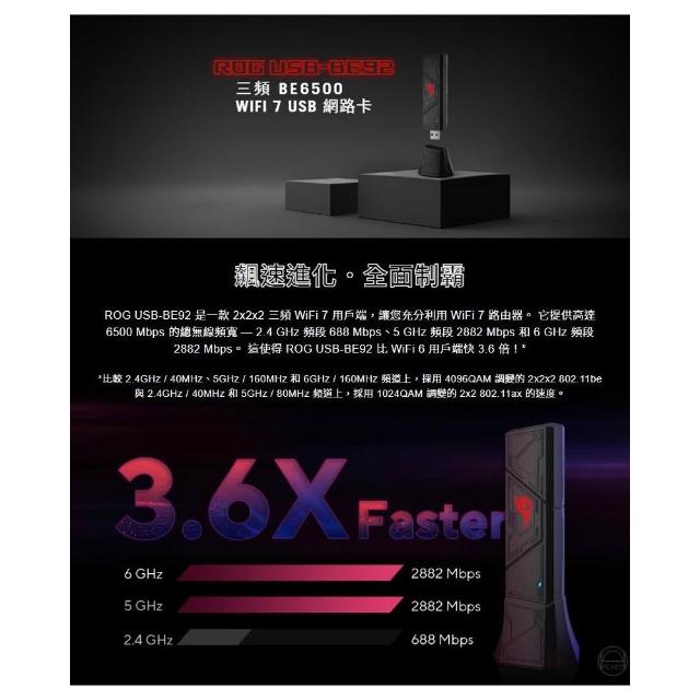 ASUS 華碩ROG USB-BE92 無線網卡 WiFi 7 6GHz 6500Mbps 三頻 wifi 接收器 網路接收器 網卡