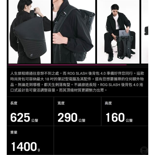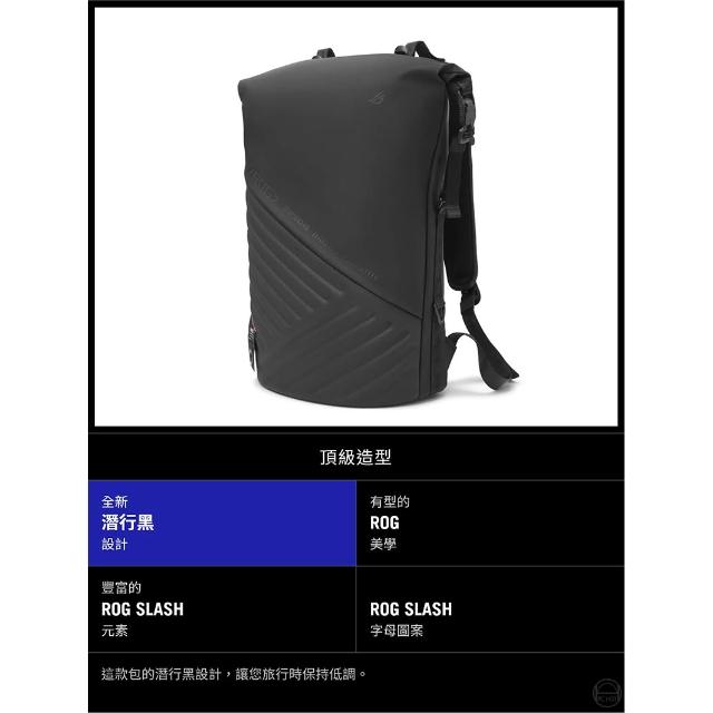 ASUS 華碩ROG Slash BACKPACK 4.0 後背包 可容納18吋的筆電 可調捲口設計 防潑水 磁吸式扣環 背包 旅行包