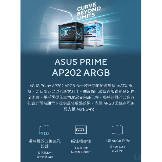 ASUS 華碩ASUS 華碩 DIY Prime AP202 電腦機殼 懸浮式進氣孔設計 支援420mm顯示卡 mATX 機殼