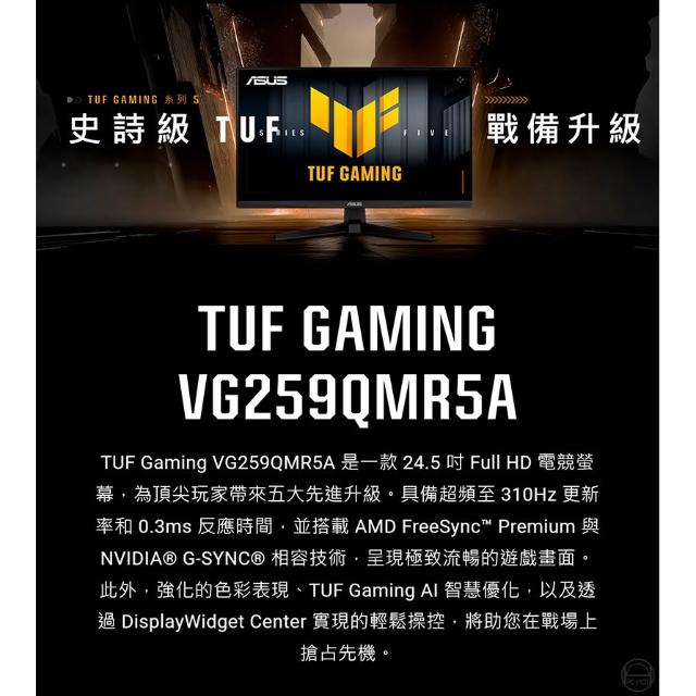 ASUS 華碩ASUS 華碩 TUF Gaming VG259QMR5A 電競螢幕 25吋 310Hz FHD 0.3ms 內建喇叭