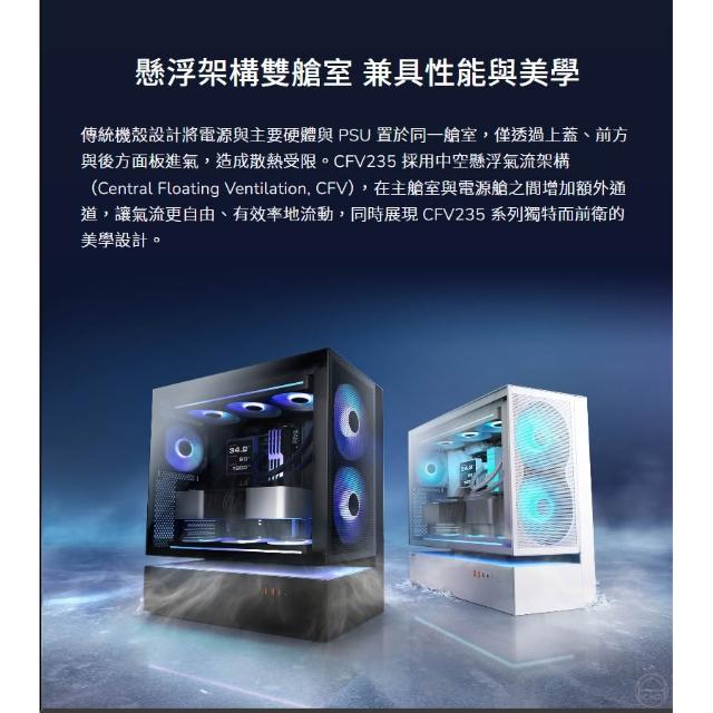 COUGAR 美洲獅Cougar 美洲獅 CFV235 Mesh 電競機殼 黑色 側邊網孔 懸浮架構雙艙室 電腦機殼 機殼 中塔機殼 機箱