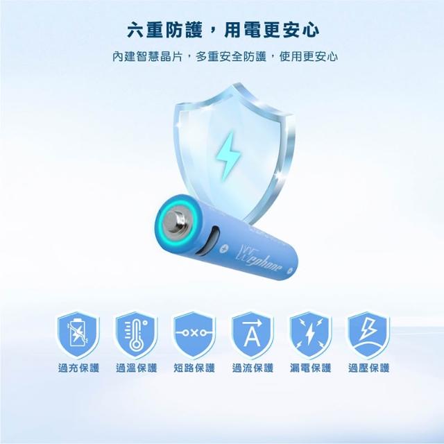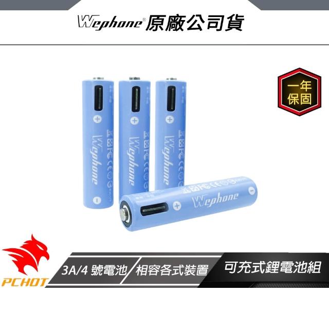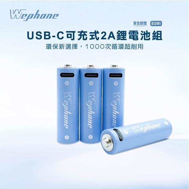 WePhone USB-C 可充式鋰電池4入組 2A/3號電池 3A/4號電池 多重安全防護 充電電池 可充式電池
