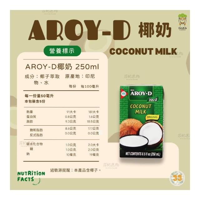 AROY-D 椰奶 250ml/瓶(泰國椰奶、無加糖)