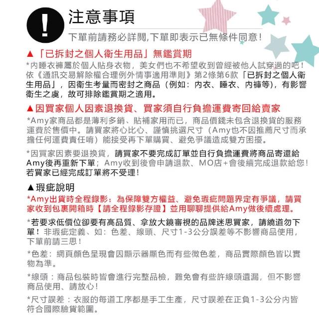 - 個人衛生用品除商品本身有瑕疵外,未拆封商品仍享有十天猶豫期之退貨權利。但已拆封 (如剪標、下水等情形…),依據《通訊交易解除權合理例外情事適用準則》第二條規定,商店無法接受退換貨。