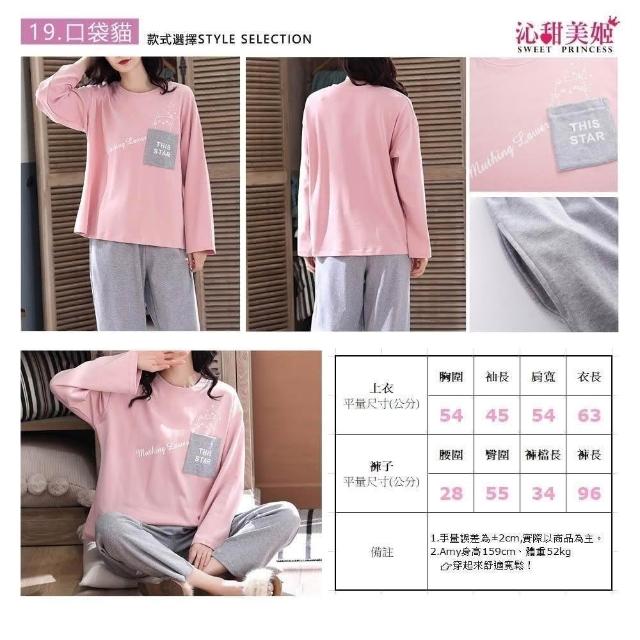 沁甜美姬女韓版童趣印花長袖棉質睡衣組(多款任選/親膚舒適/休閒寬鬆/居家服套裝/圓領套頭/精梳棉)