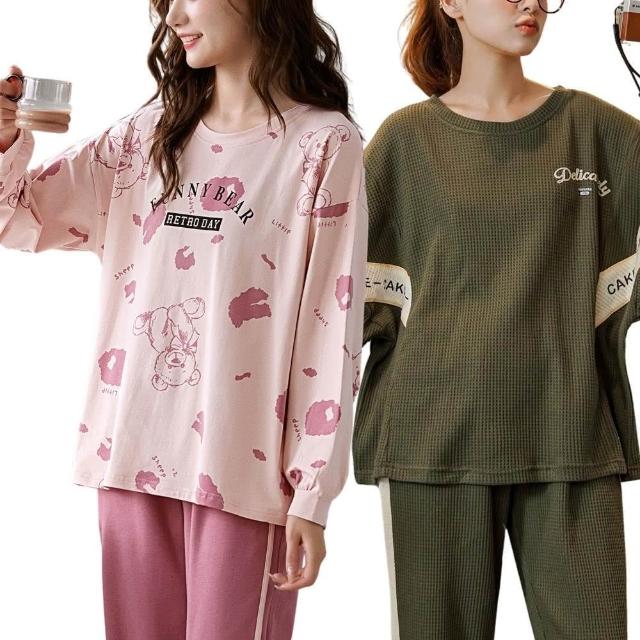 沁甜美姬女韓版童趣印花長袖棉質睡衣組(多款任選/親膚舒適/休閒寬鬆/居家服套裝/圓領套頭/精梳棉)